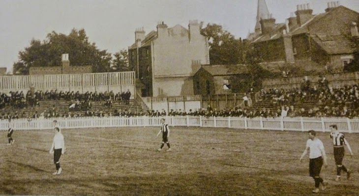 $ 0 0 Tottenham Hotspur moved to White Hart Lane (site of a market garden) in 1899. These photographs show the first match played at the new enclosed ground, which had a capacity of 35,000. Notts County (stripes) were the visitors.