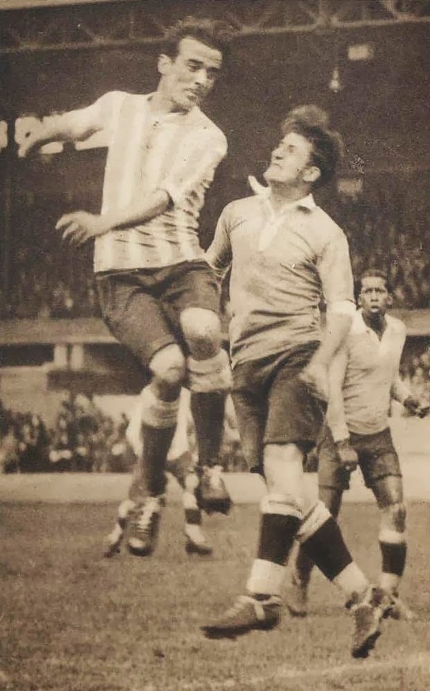 $ 0 0 The Olympic Final, 1928. I believe that it's Fernando Paternoster out jumping Jose Nasazzi. Jose Andrade looks on.