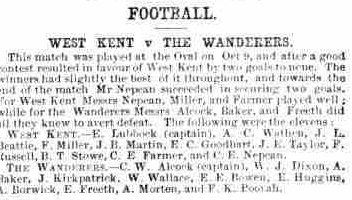 A significant change occurred on Saturday October 9th 1869, when The Wanderers v West Kent was played at the Kennington Oval, the home of Surrey Cricket Club. This was the first football match to be played at the famous venue.